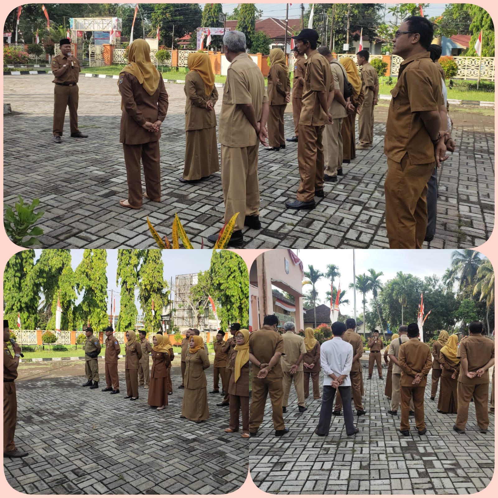 Apel pagi di Kantor Camat Jonggat dipimpin oleh Sekretaris Camat (Sekcam) Jonggat, H. Saefuddin, SE., dan diikuti oleh seluruh Kasi, Kasubag, serta staf Kantor Camat Jonggat.