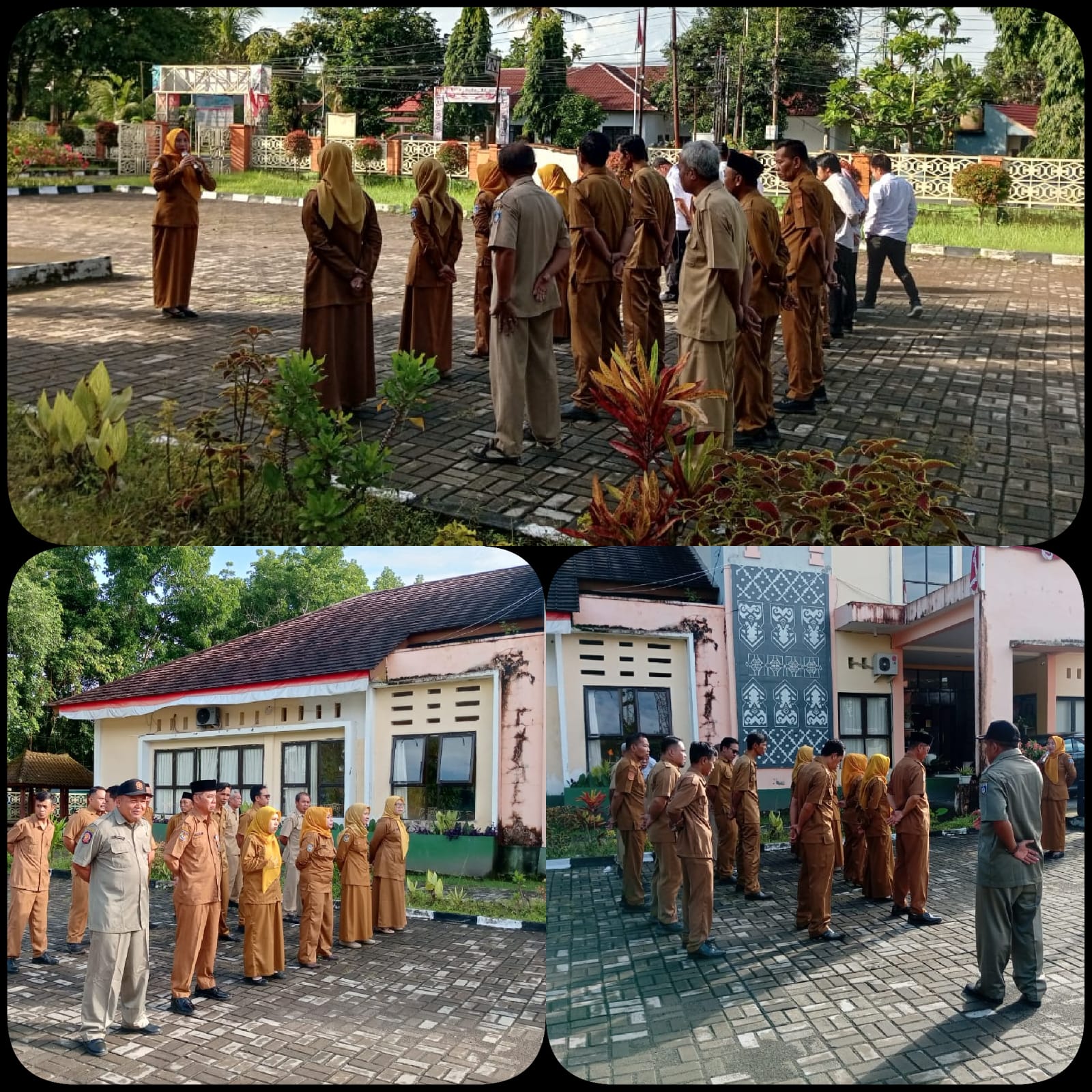 Kegiatan apel pagi ditutup dengan penyampaian agenda kerja kecamatan selama satu minggu ke depan, termasuk persiapan rapat koordinasi, pendampingan kegiatan desa, serta evaluasi program akhir tahun. Suasana apel berlangsung tertib dan penuh semangat sebagai wujud komitmen aparatur Kecamatan Jonggat dalam memberikan pelayanan optimal kepada masyarakat.